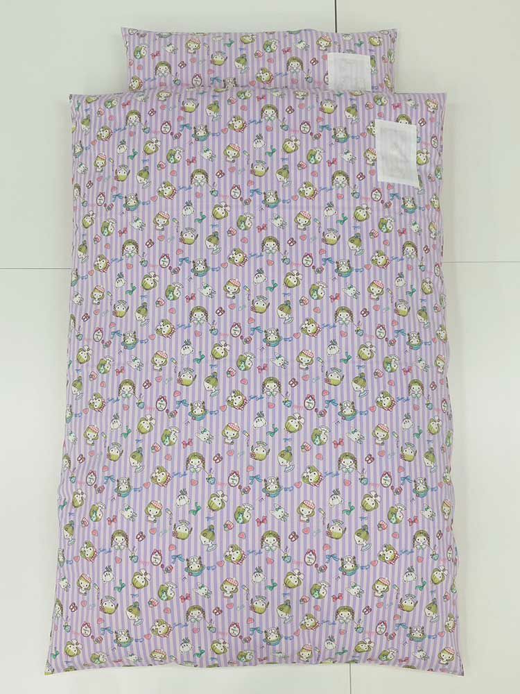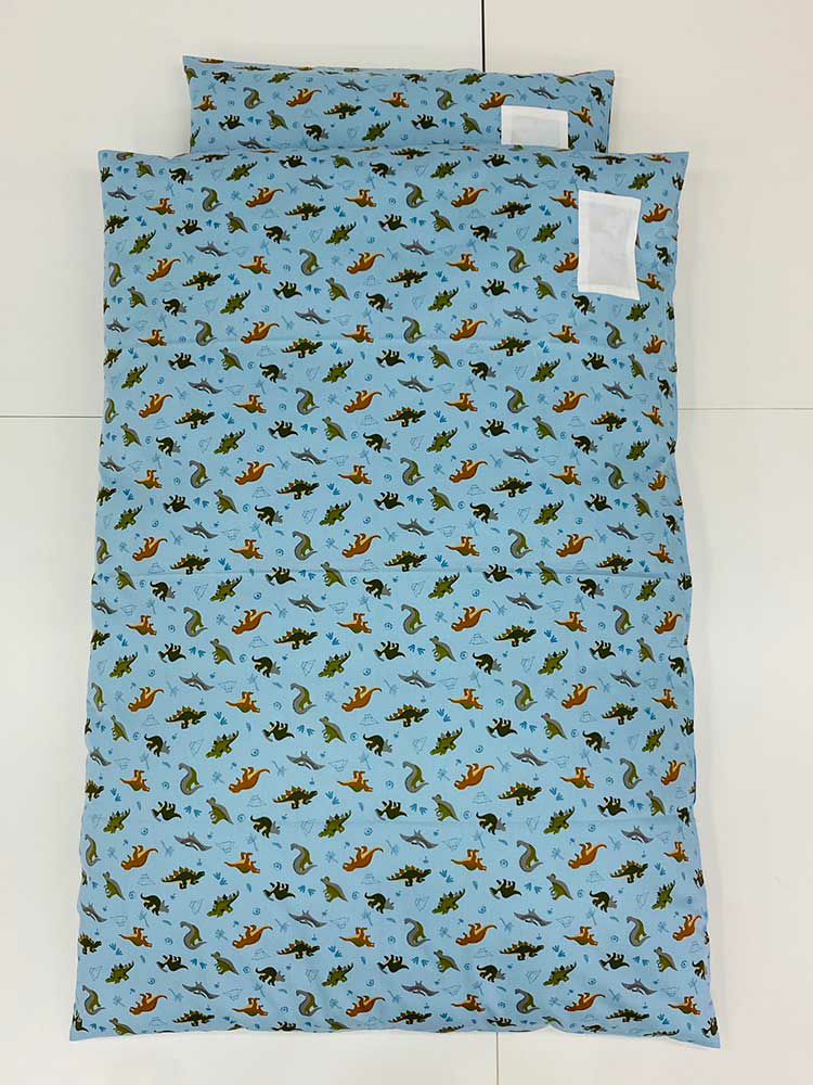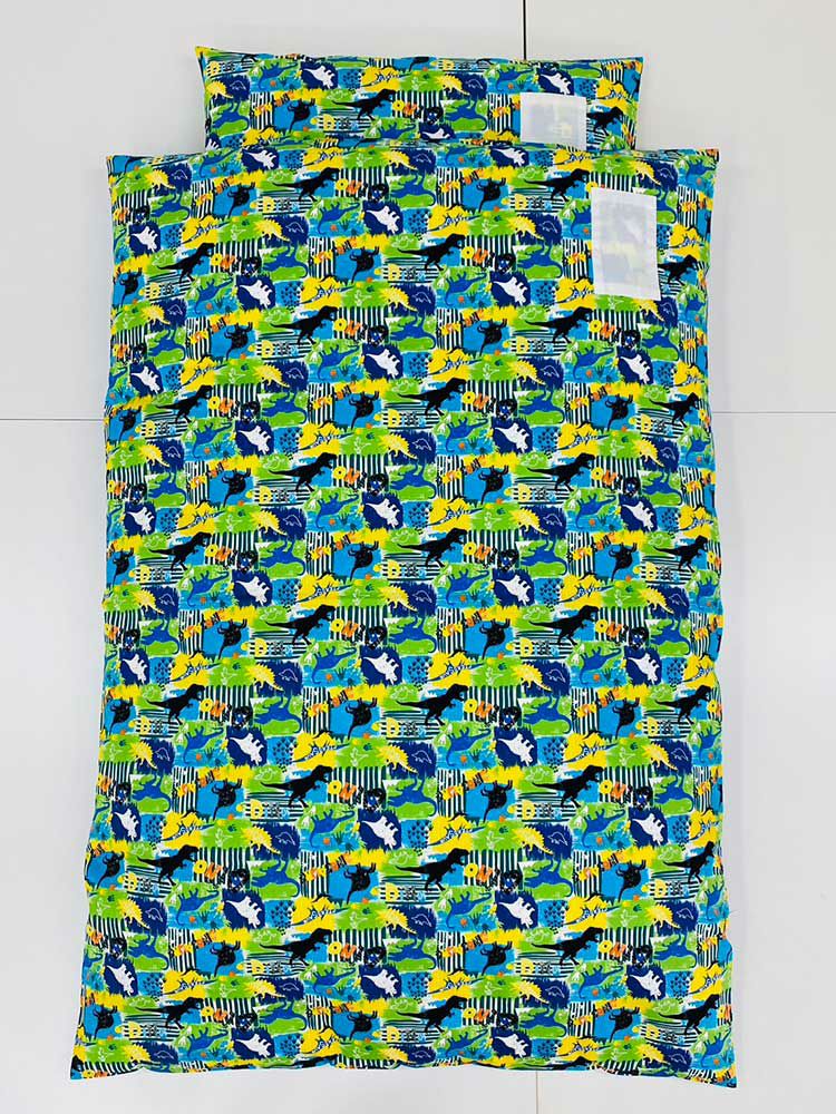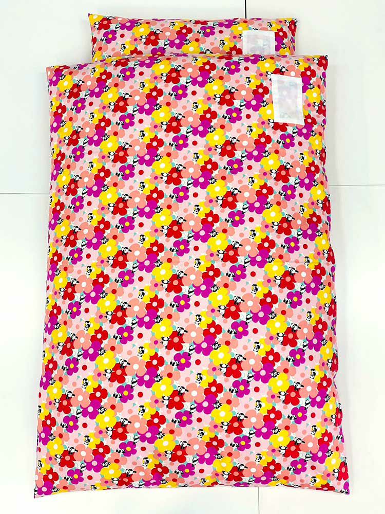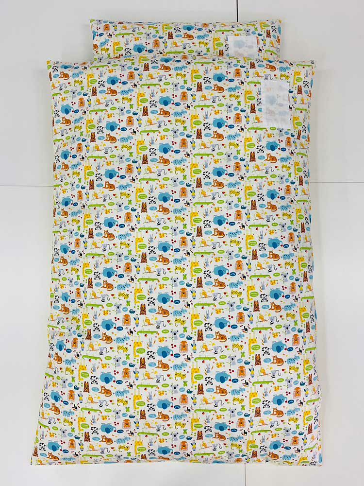 布団専門店としてこれはなんとかしなければ、子どもさんの睡眠が危ない! と思い本格的にめん綿をたっぷり使ったお昼寝布団セットに取り組むことになったのです。園や親御様の使い勝手にこだわり、側生地サイズ130cmと年長さんでも足が出にくい大き目サイズに設計いたしました。さらに、お子様が楽しくお昼寝できるように様々な色柄を取り揃え、保育園お昼寝布団セットは多くの方から喜びの声をいただいております。
