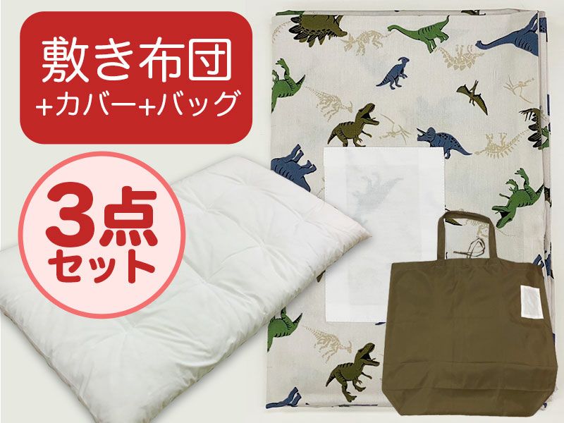【敷き布団+カバー+バッグ】お昼寝布団 恐竜ホワイト (26-C.1)