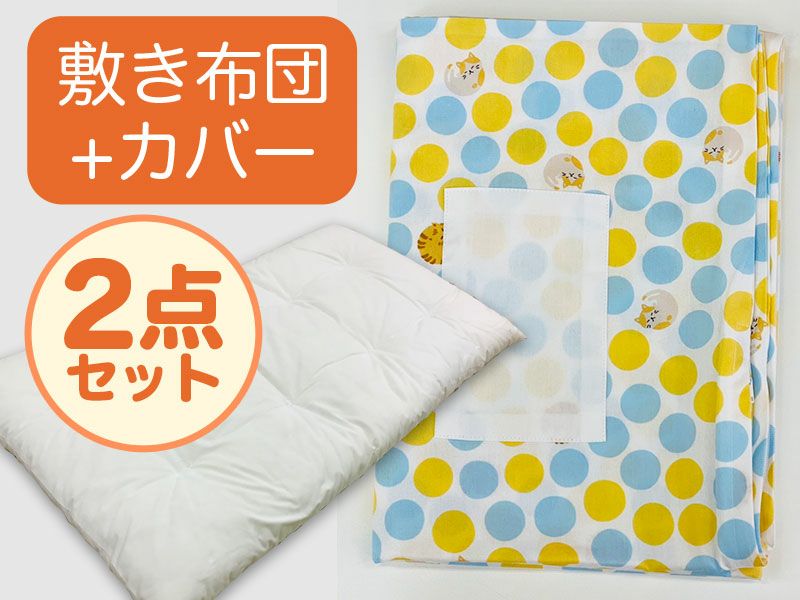 【敷き布団+カバー】お昼寝布団 ねこと水玉 (25-C.7)