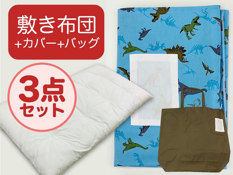 【敷き布団+カバー+バッグ】お昼寝布団 恐竜ブルー (25-B.10)
