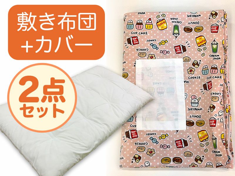 【敷き布団+カバー】お昼寝ふとん 女の子柄 スイーツ(26-A.16)