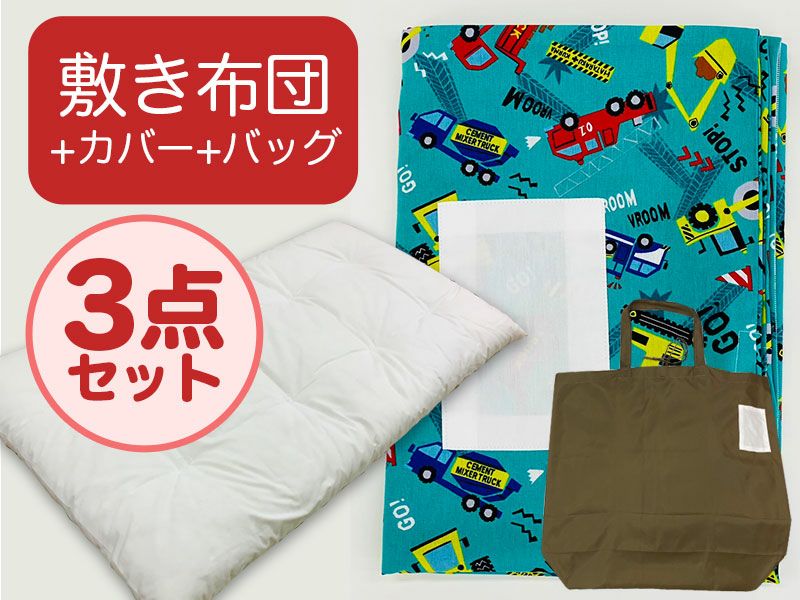 【敷き布団+カバー+バッグ】お昼寝布団 はたらく車グリーン (25-B.9)
