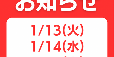 1月13日、14日、15日はお休みさせて頂きますよろしくお願いします…