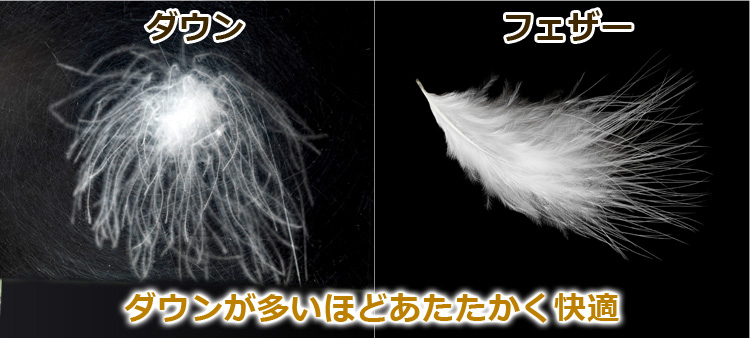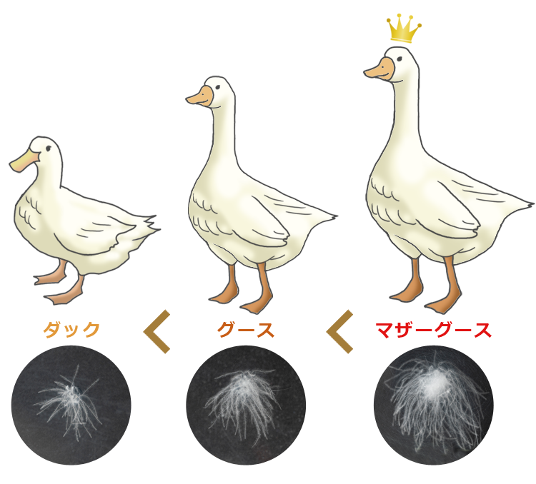 羽毛(ダウン)には、ダック、グース、マザーグースの3種類があります。