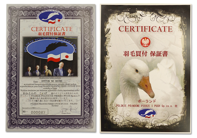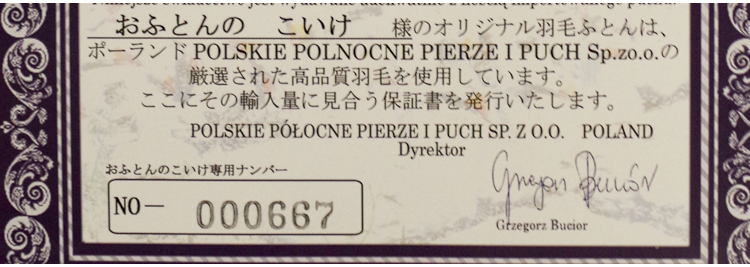 なぜ?? と思い、そのメーカーに問い合わせると、このメーカーのポーランド産羽毛は第三国(中国・台湾)を経由せずポーランド最大の羽毛メーカー「PPPP社」より直輸入しているとのこと。