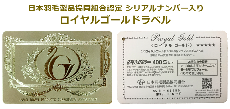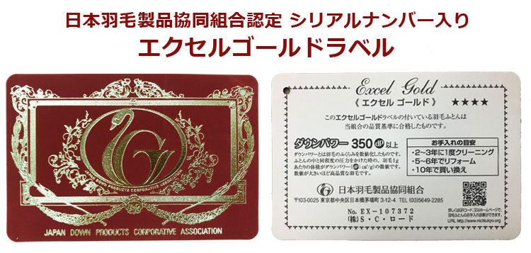 日本羽毛製品協同組合 品質推奨ラベル「ゴールドラベル」